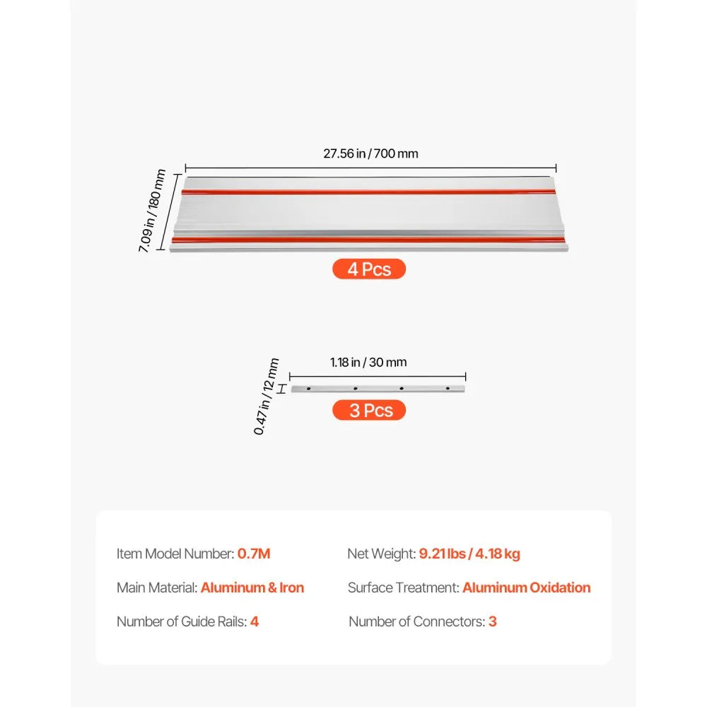 0.7M - 27.5" Aluminum Track Saw Guide Rail Kit with Connectors