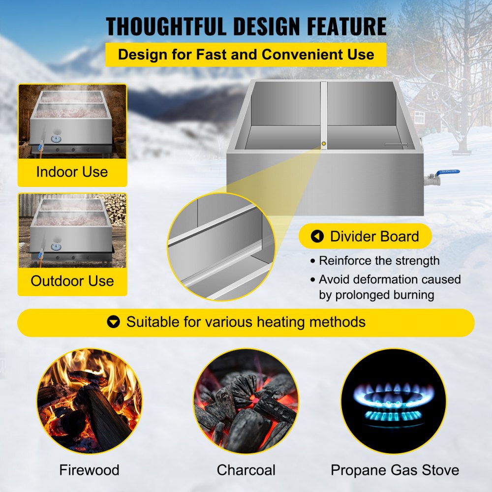 This evaporator also includes a digital thermometer, enabling you to keep an eye on the temperature of your maple sap with precision Take charge of your health and indulge in delicious treats by adding this high-quality evaporator pan to your collection today!.