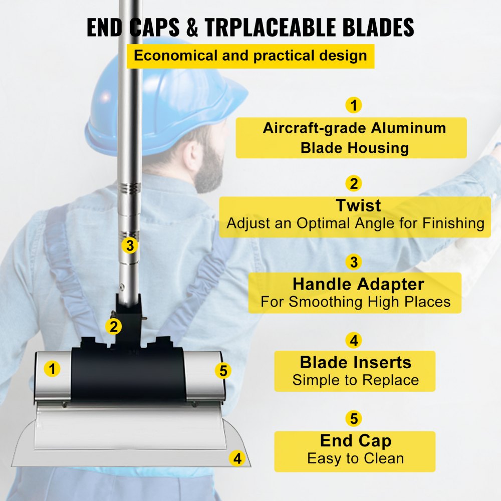 Introducing the VEVOR skimming blade set, featuring three versatile sizes of 10, 16, and 24 inches, perfect for tackling a variety of projects Each blade is crafted from premium stainless steel, designed to retain a straight, flexible shape that allows for effortless application in drywall tasks The included ergonomic extension handle enables efficient maneuverability, accommodating different heights for both small and large projects.