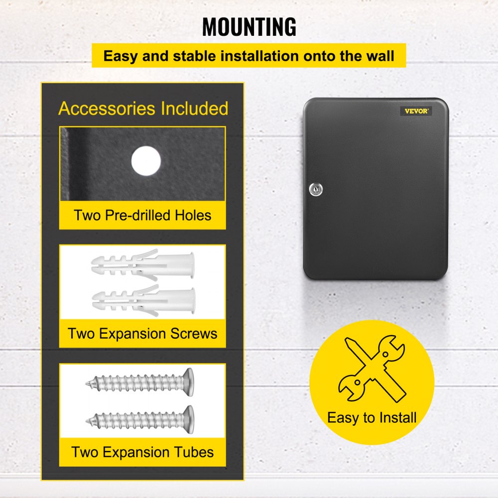 Keep your keys secure and neatly stored with the VEVOR key cabinet Crafted from robust Q235 steel, this cabinet promises excellent durability It is designed for straightforward wall mounting, making it a practical addition to any space The integrated key lock system enhances security, while its elegant black finish complements various interior styles Measuring 12" x 94" x 35", this space-saving cabinet is ideal for environments such as schools, offices, hotels, and banks.
