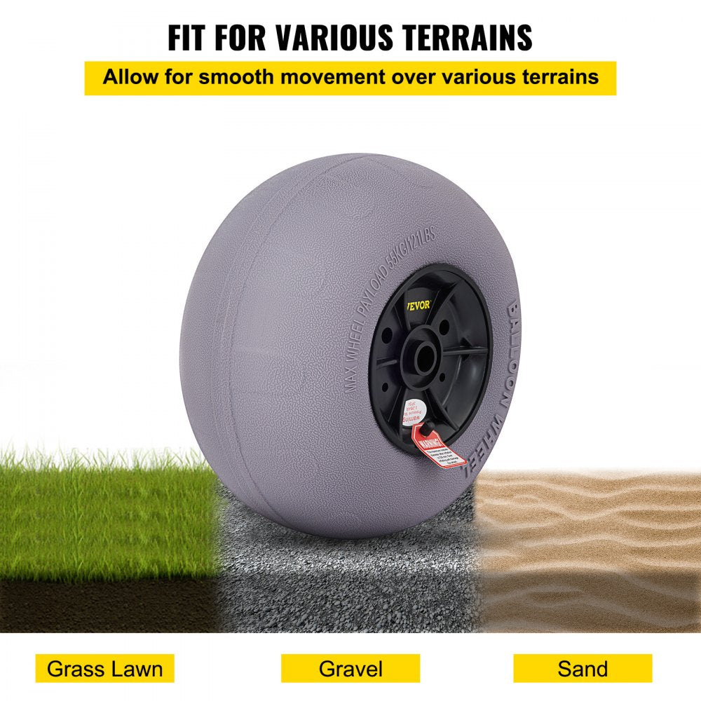 Enhance your outdoor adventures with the VEVOR Beach Balloon Wheels, specifically crafted for beach outings and more These 13-inch replacement tires excel on various terrains such as sand, grass, and gravel, providing exceptional maneuverability Made from durable TPU material, each wheel can support loads of up to 121 lbs and features a low-pressure design ranging from 2-3 PSI to minimize sinking in soft ground.