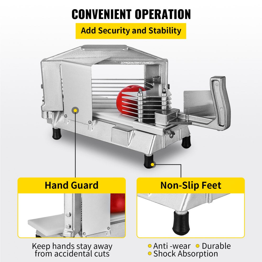 •Can cut tomatoes into uniform 3/8-inch thick slices within one minute.