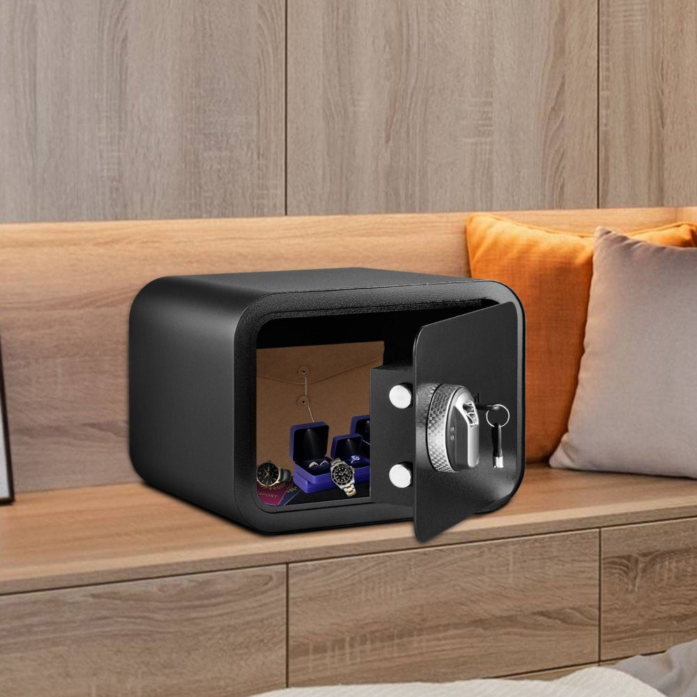 Introducing this robust safety box, designed for secure storage with a generous 1 cubic foot capacity Equipped with multiple reliable locking mechanisms, you can access your valuables swiftly using either a key or fingerprint authentication Crafted from solid steel, it features durable 12 mm alloy construction that resists dust and corrosion, providing exceptional protection against break-ins The doors are reinforced with 3 mm thick steel for added security, while an internal soft carpet ensures your items remain in pristine condition.