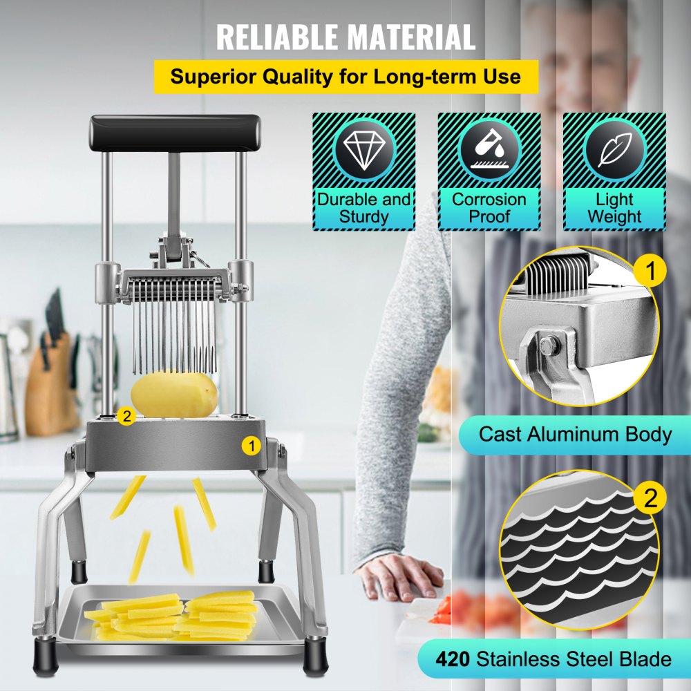 - AY420 - Durable Manual Fry Cutter with 1/2" Stainless Steel Blade