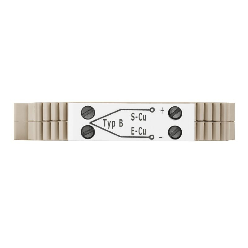 Introducing a reliable thermocouple terminal with a dark beige hue, designed for secure screw connections This component accommodates a wire cross-section of 25 mm² and operates efficiently at a maximum voltage of 55 V It features a versatile configuration allowing two connections on a single level, suitable for installation on a TS 35 mounting rail Plus, it adheres to strict RoHS standards, ensuring environmentally friendly use.