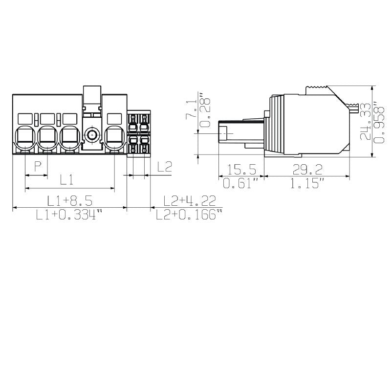 - 2720610000 - 7.62mm Female PCB Connector, 180° Push-In Style (Pack of 15)