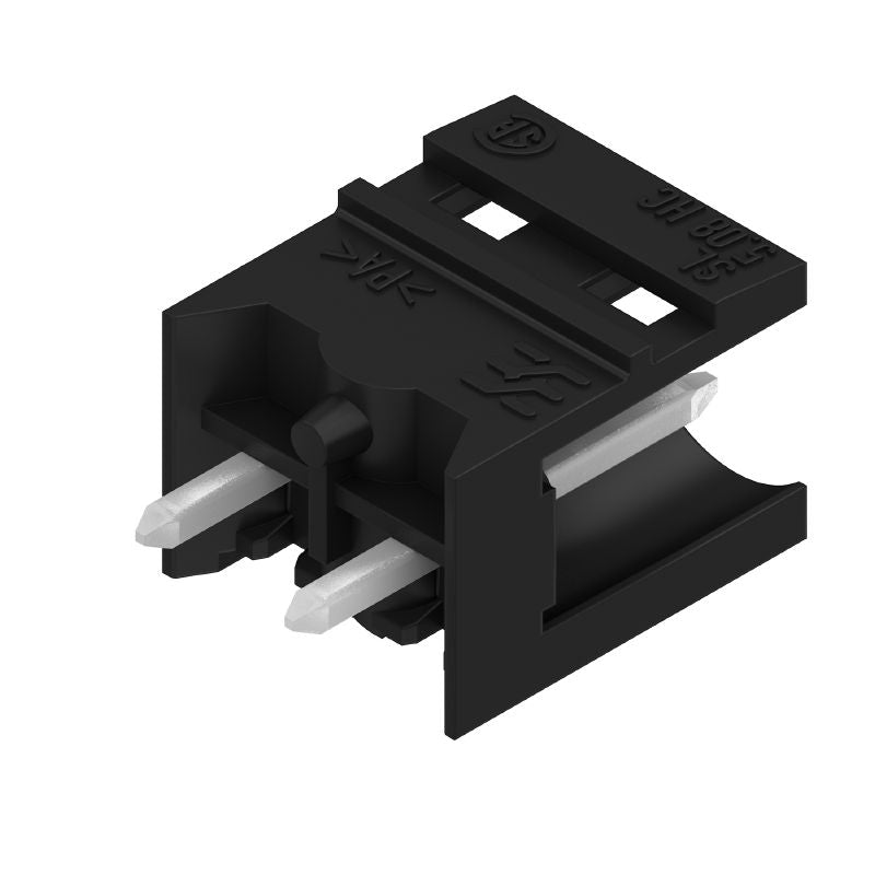 Introducing a reliable 508 mm male header PCB plug-in connector, designed for seamless functionality This connector features an open side design with through-hole technology (THT) solder connections, ensuring secure and stable connections It comprises 2 poles and is equipped with a 180° outgoing elbow for optimal routing The solder pin measures 32 mm in length and is offered in a classic black color.