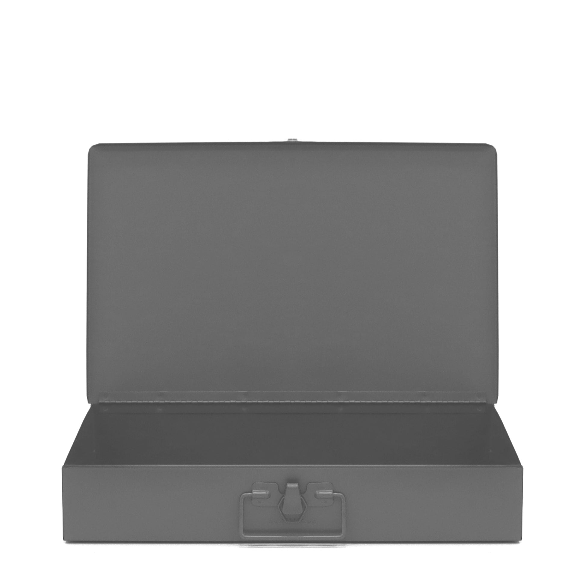This large steel compartment box is designed to accommodate various components and tools, featuring a powder-coated, gloss finish that provides durability and aesthetic appeal The box comes empty and is suitable for use with models 302, 303, 303B, 305B, 309B, 310B, and 321B The overall dimensions of the box are 18-5/16 x 12-7/16 x 3-1/16 inches, making it ideal for storage needs in various applications.
