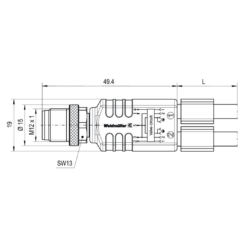 - 9457900100 - 1m M12 to M12 Connecting Cable for Sensors and Actuators