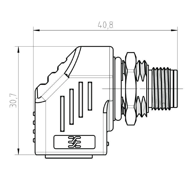 Introducing a versatile angled adapter that connects through RJ45 90° and M12 interfaces, specifically engineered for Cat5 networks and adheres to ISO/IEC 11801 standards With an impressive IP67 protection rating, this adapter is built to withstand demanding environments It also meets RoHS compliance, and features a gold-plated contact surface to ensure superior conductivity and performance.