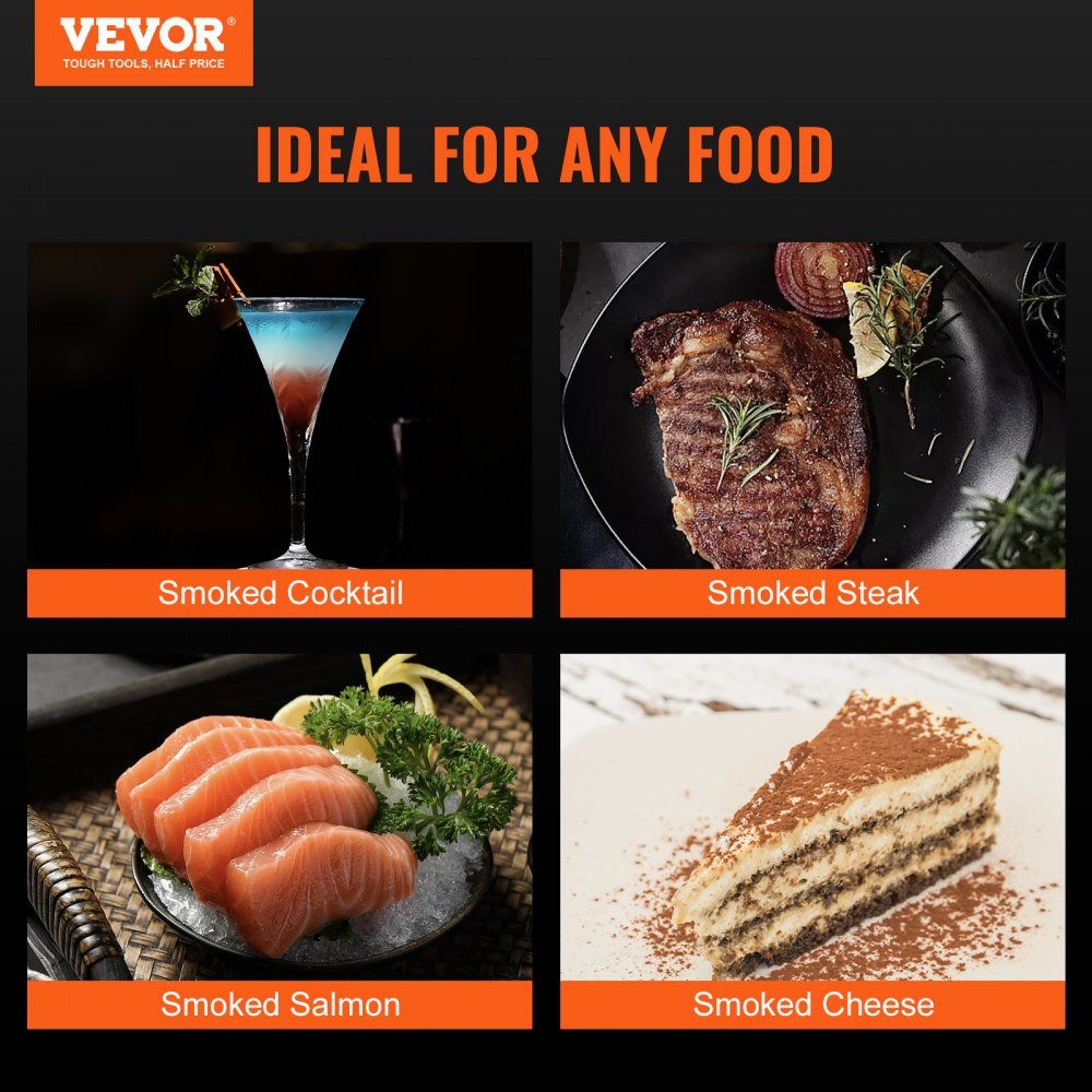 This versatile tool is designed to enhance both the taste and aesthetic appeal of your dishes, making it perfect for impressing family and friends The VEVOR smoking cloche also features a cocktail smoke dome, which flawlessly infuses cocktails and beverages with rich, aromatic flavors, adding a sophisticated touch to any event Whether you’re a mixologist or just enjoy crafting beverages at home, this cloche ensures consistent results, making it easy to achieve bar-quality drinks.
