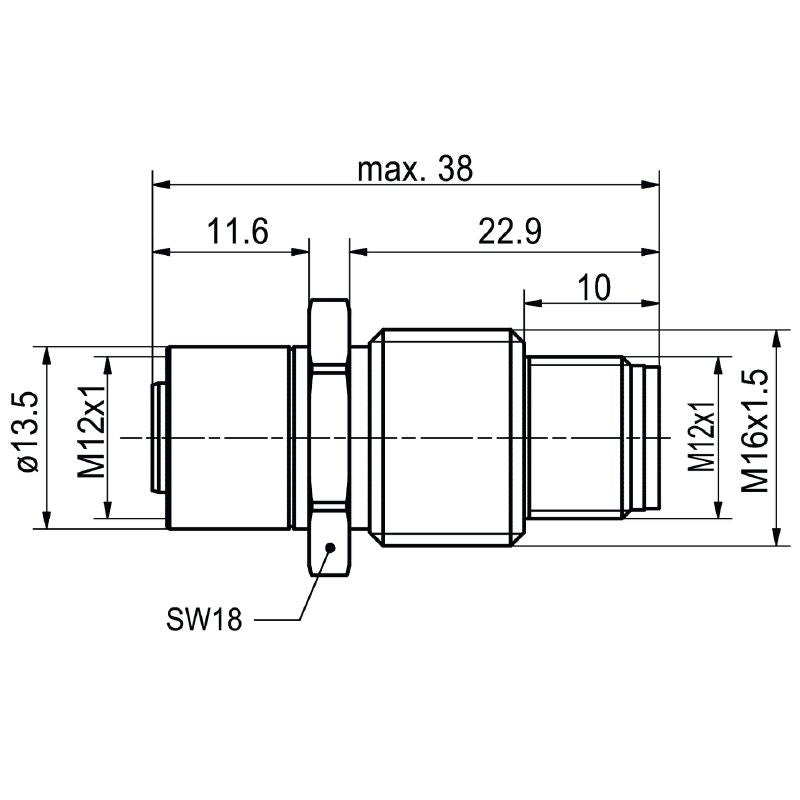 1543490000 - IP67 A-Coded 8-Pole M12 M16 Connector, 30V 1.5A