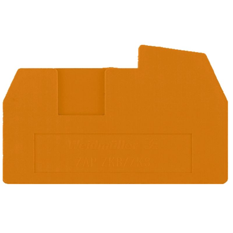 Introducing the ZAP ZKB/ZKS OR end plate, expertly crafted for diverse applications and compliant with RoHS standards With dimensions of 264 mm depth, 43 mm height, and 25 mm width, this lightweight component weighs just 205 g It operates efficiently in temperatures ranging from -5 °C to 40 °C and remains functional in extreme conditions from -50 °C to 120 °C Made from high-quality Wemid material in a striking orange hue, it has a UL 94 flammability classification of V-0.