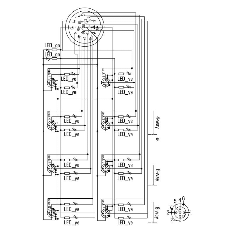 - 2819020000 - M8 3-Pole LED Passive Distributor, 6-Socket, RoHS & UL Certified