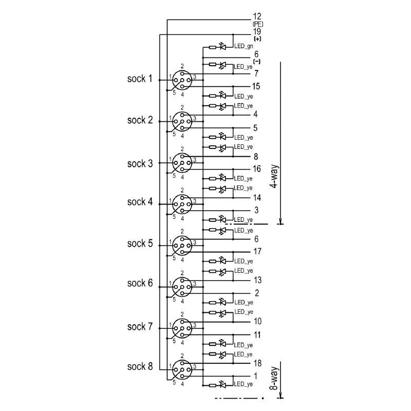 - 1705943000 - M25 Outlet LED Indicator, PNP Wiring, SAI-8-MHD-4P M12