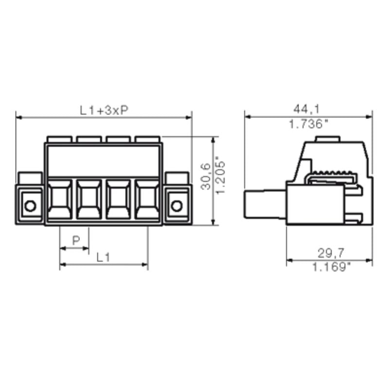 - 2917130000 - 7.62mm Male PCB Connector, 4 Poles, 180° Outlet (Pack of 30)