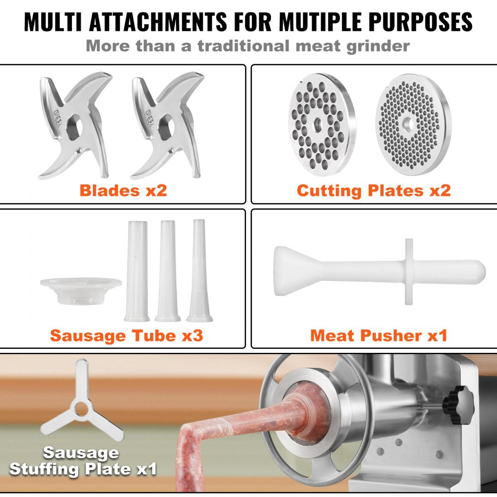 Safety and longevity are paramount, with the machine constructed from food-grade materials and certified by ETL It comes complete with multiple accessories, making it the perfect companion for a range of culinary tasks, especially sausage making.