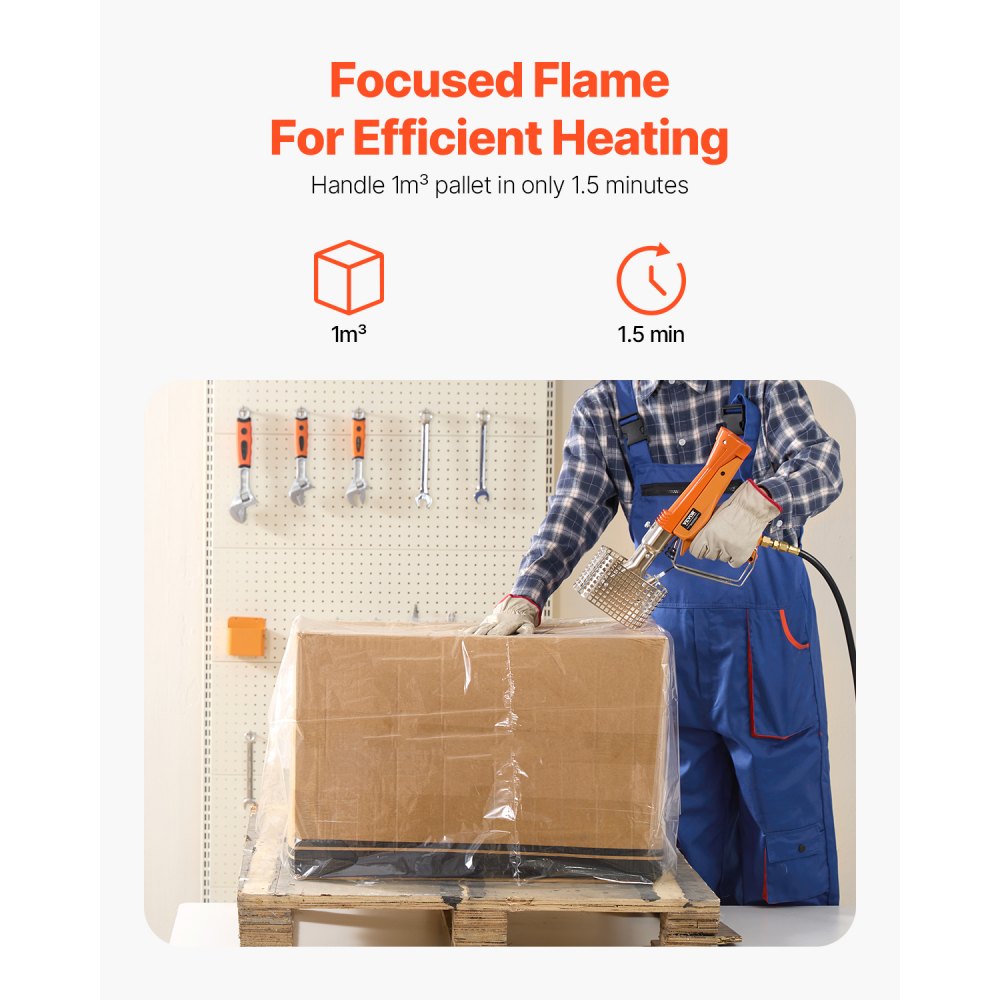 •Powerful 187,660 BTU output allows for heating 1 cubic meter of pallet wrap in about 1.5 minutes.