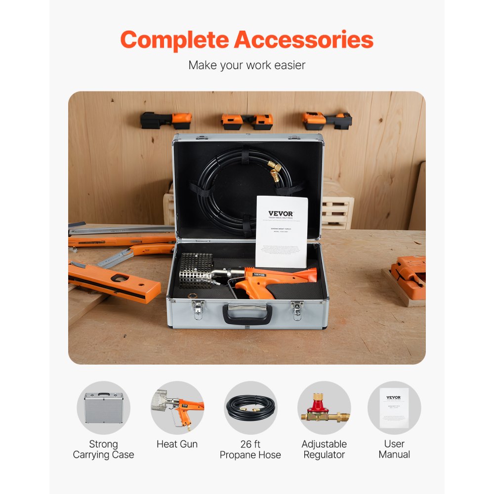 Its ergonomic handle is designed to reduce fatigue during extended use, while the lightweight and portable design makes it especially suited for outdoor projects, such as boat shrink wrapping and pallet packaging Plus, all necessary accessories can be stored neatly in the included case for hassle-free transport.