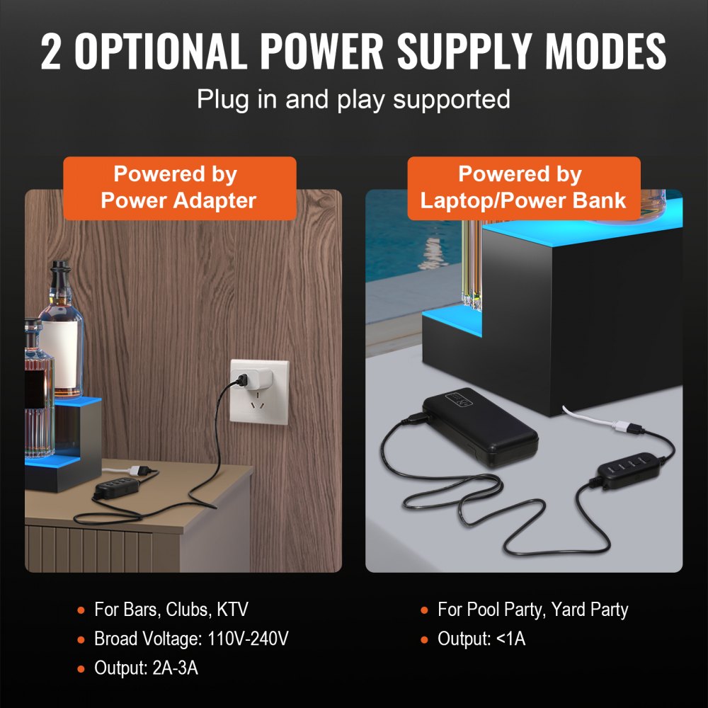 •Dual power supply options: 110-240V power adapter and laptop/power bank compatible.