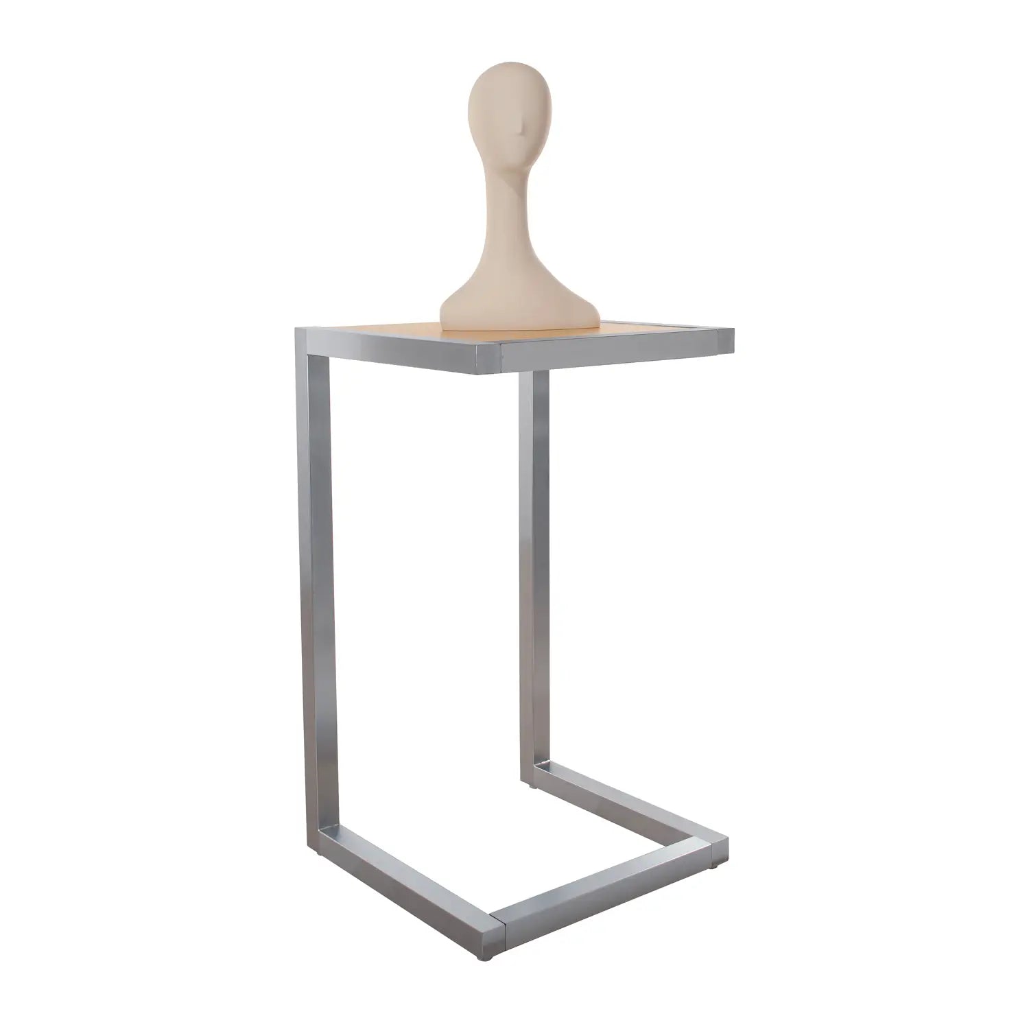 • Ideal height for featured items - 42" overall floor to top. 2" square satin chrome steel tubing. 3/4" thick MDF/Melamine top in hard rock maple finish.