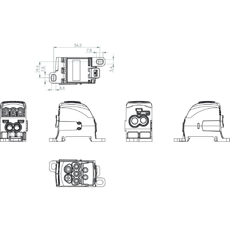 - 2518250000 - 7-Port Distributor Terminal for 25mm² Wire, 164A, RoHS Compliant