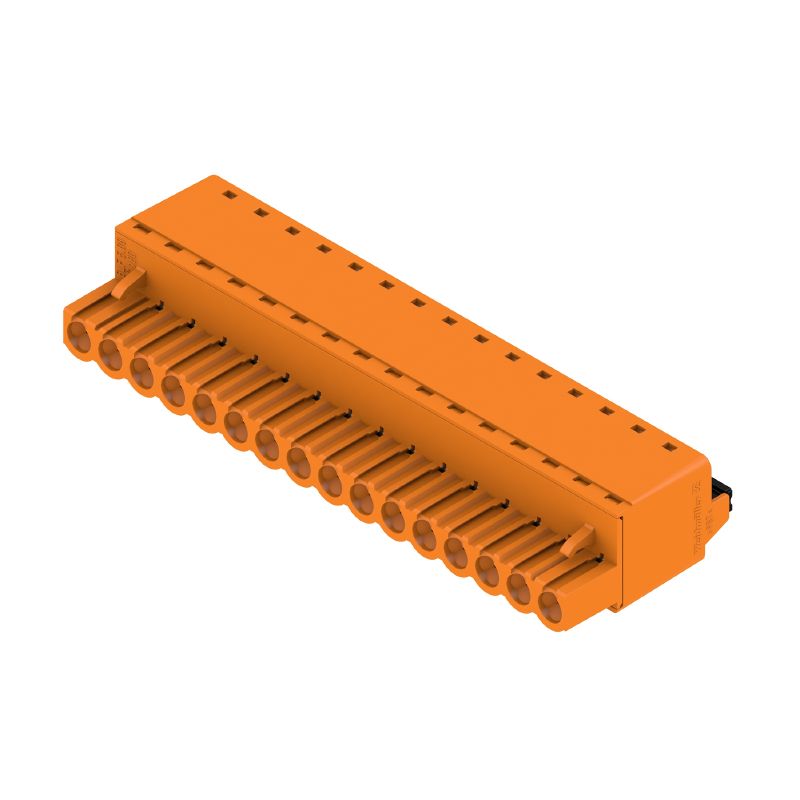Introducing a reliable PCB plug-in connector, expertly crafted for field connections This female plug, featuring a 508 mm pitch, accommodates 16 poles with a 180° orientation It operates using a PUSH IN connection method, eliminating the need for an actuator, and can support a maximum cable cross-section of 331 mm² Additionally, this connector meets stringent safety and quality standards, including RoHS compliance, guaranteeing its safe usage without exceptions.