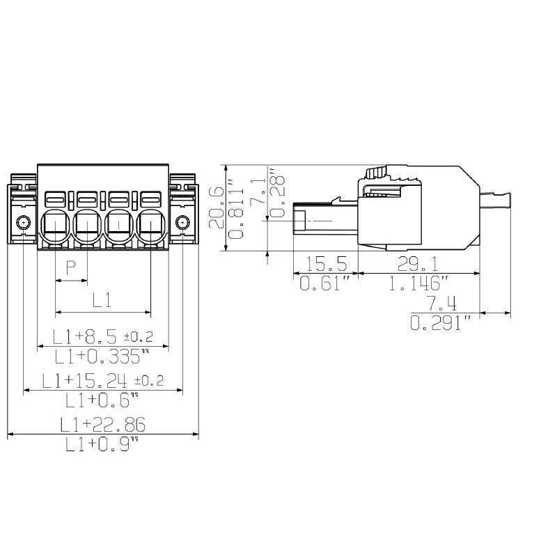 - 2720610000 - 7.62mm Female PCB Connector, 180° Push-In Style (Pack of 15)