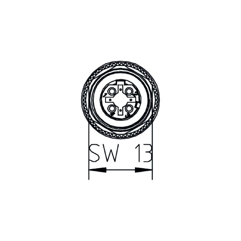 Introducing the M12 field attachable connector, model SAIBGC-M-4D-4/9, a reliable choice for your connectivity needs This connector meets RoHS standards and is designed to fit cables with diameters ranging from 4 mm to 9 mm It features a gold-plated female contact, capable of handling a nominal current of 4 A and a voltage of up to 50 V With four poles, this connector is built to endure at least 500 plugging cycles.