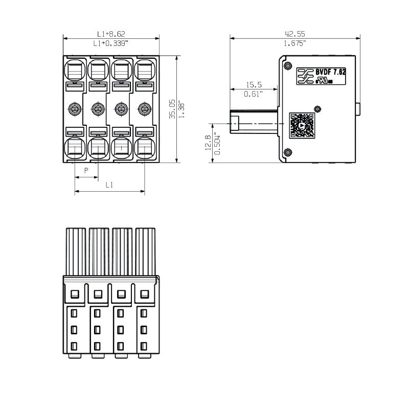 - 2628630000 - 7.62mm 4-Pole Female PCB Connector with PUSH IN Mechanism (Pack of 36)