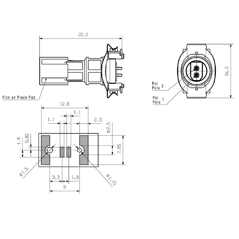 | Solder pin dimensions | Octagonal |