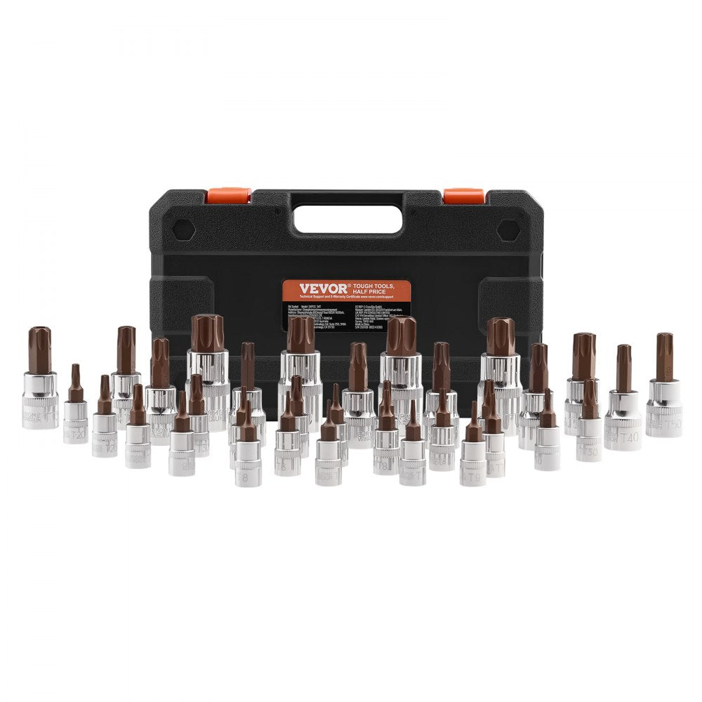 - 34PCS 34T - Durable S2 Torx Bit Socket Set with Waterproof Case
