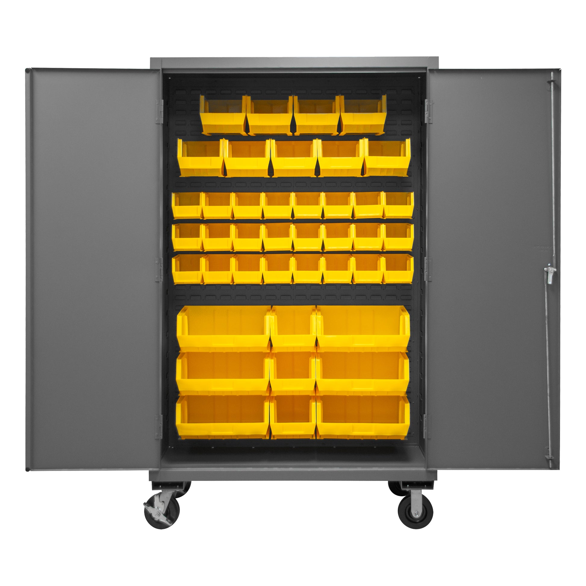 3502M-BLP-42-95 Mobile Cabinet, 14 Gauge, 42 Yellow Bins, 48 x 24 x 81