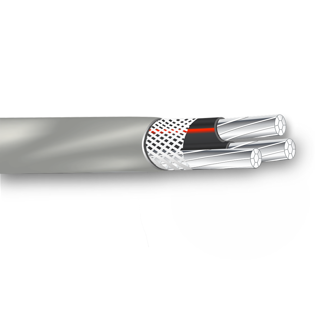 Aluminum SER cable has a type XHHW-2 cross linked polyethylene (XLP) insulation. The conductors are cabled together with a bare aluminum ground and covered with a reinforced binder tape. For color code, see table B in the technical section.