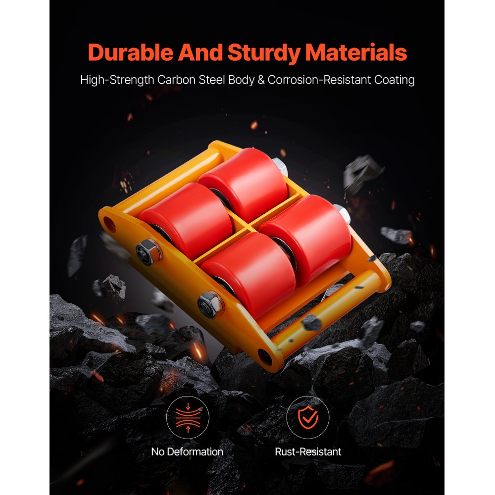 - 4T - 13228 lbs Metal Machine Skate Dolly with 360° Rotation and PU Wheels