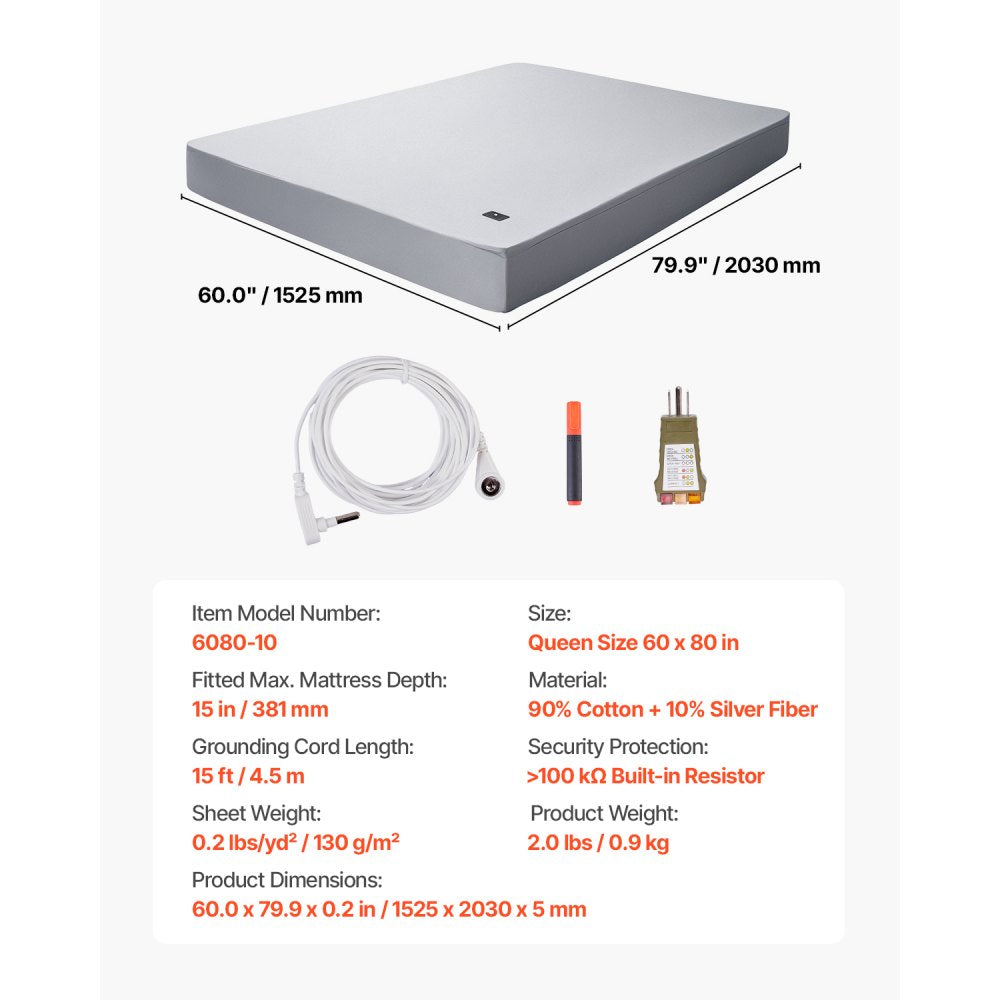 6080-10 - Queen Grounding Sheet 60x80, Cotton & Silver Blend