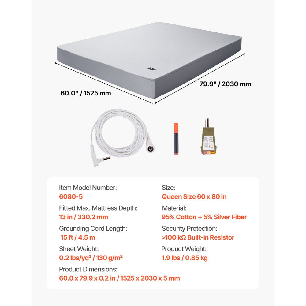 6080-5 - Queen Grounding Sheet 60 x 80 in, Cotton & Silver Fiber