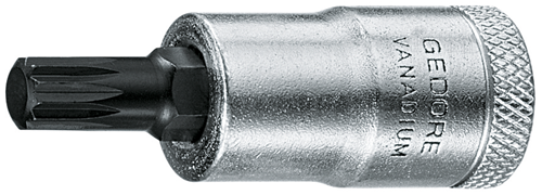 Enhance your toolkit with this 3/8" XZN multi-point screwdriver bit socket, tailored to M8 specifications as per DIN 2324 It features a square drive designed according to DIN 3120 - C 10 and ISO 1174, complete with a ball retention groove for secure fitting This manually-operated tool boasts a non-slip cross knurling for better grip, a stylish chromed exterior, and incorporates a pressed-in pin made from GEDORE vanadium special steel that has undergone a manganese-phosphated treatment.