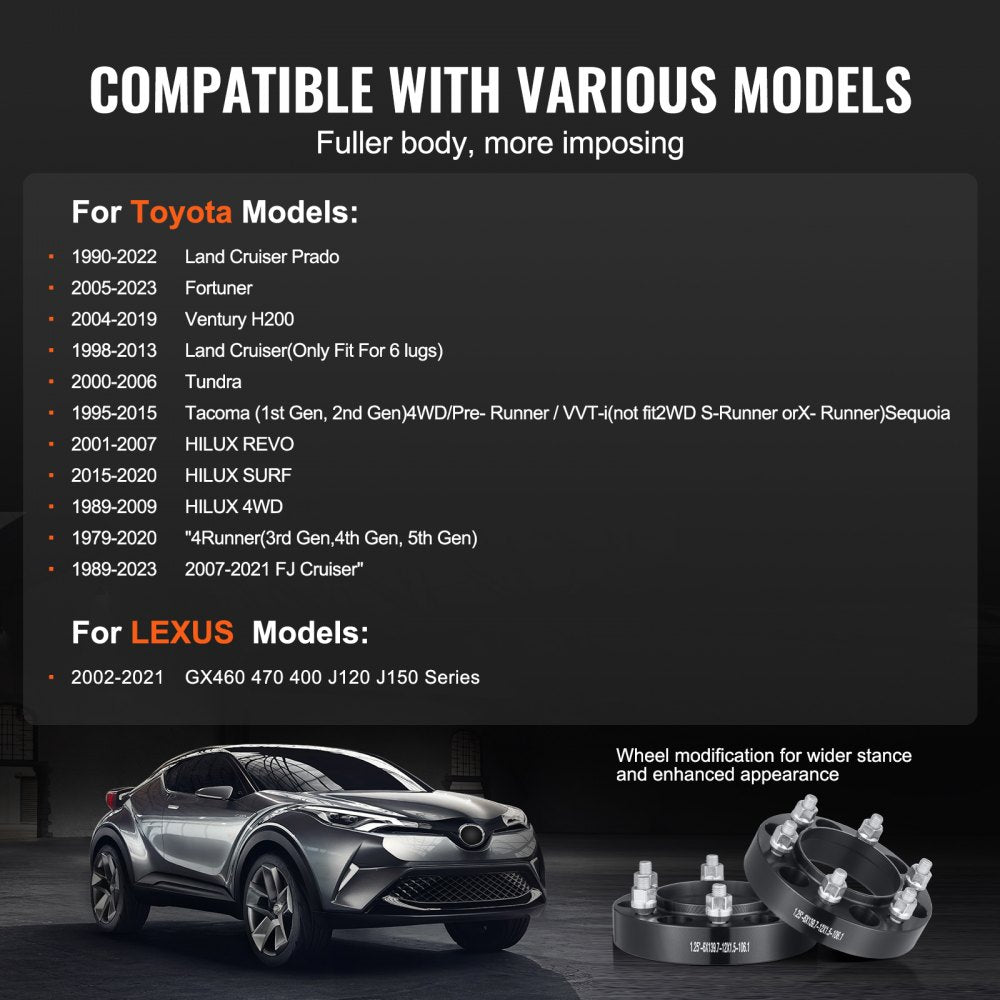 •Wide Compatibility: Reliable wheel spacers for various Toyota and Lexus models from 1979 to 2023..