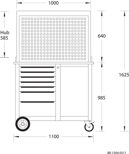 Introducing a mobile workbench crafted from durable sheet steel, engineered to resist both corrosion and scratches, finished in a striking GEDORE blue powder coating This workbench showcases a 30 mm thick multiplex laminated beech wood surface, elegantly protected with linseed oil varnish