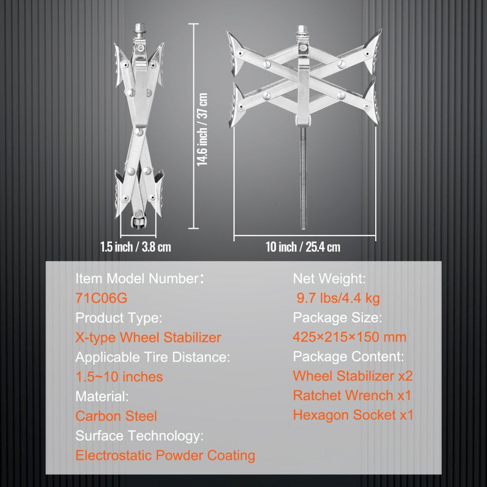 •Can fit tire spaces ranging from 1.5" to 10" making it suitable for various vehicle types..