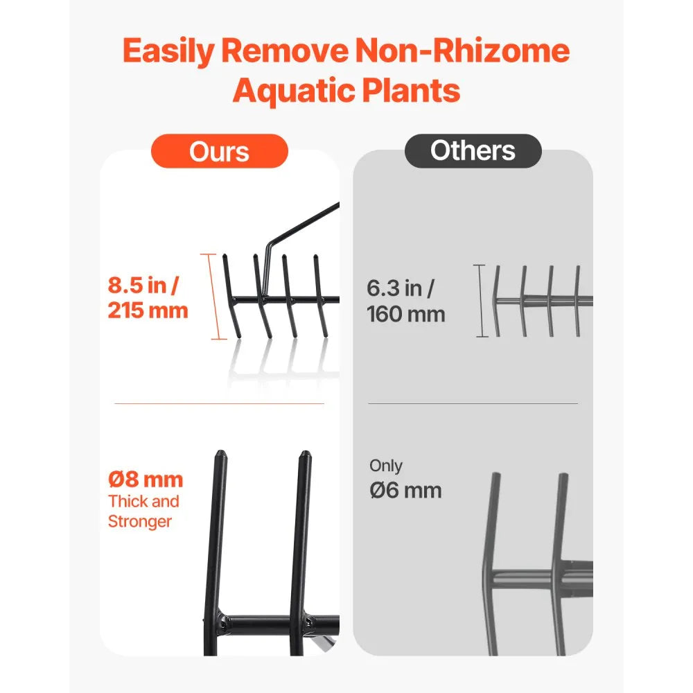 Perfect for addressing issues such as eurasian watermilfoil, chara, silk moss, coontail, and cotton moss, this tool is ideal for both residential ponds and professional waterway management, enhancing water quality effectively.