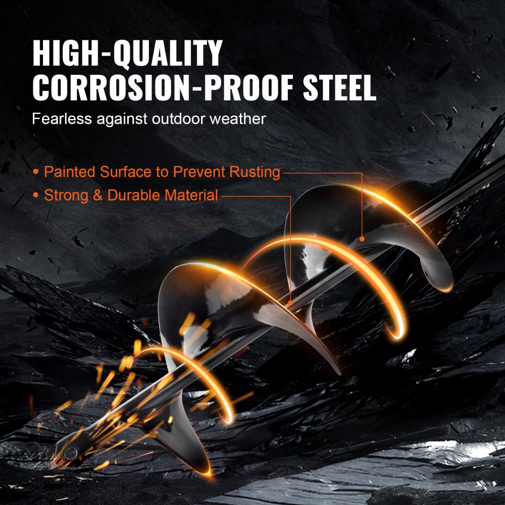 Crafted from premium cold-rolled steel, these auger bits promise exceptional longevity and resilience This high-quality material ensures that the bits can withstand significant wear and tear, resisting breakage and preventing rust thanks to a protective black paint coating Designed to endure tough soil and stubborn roots, their sturdy construction translates to exceptional performance even with heavy usage.