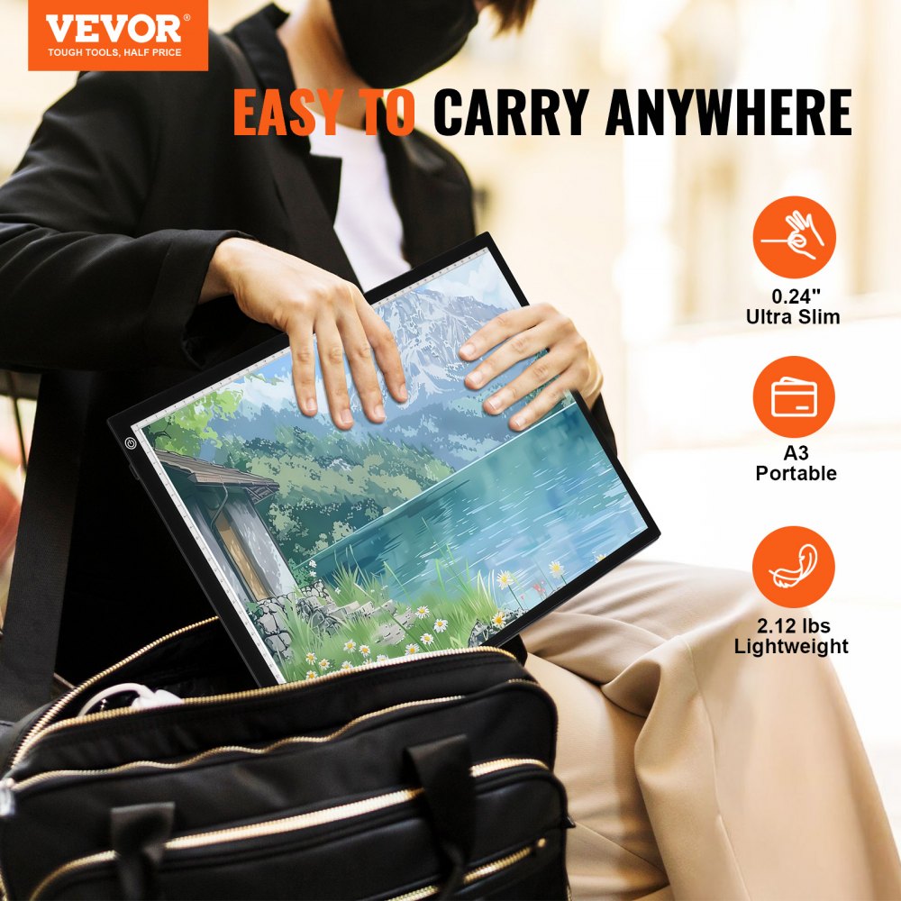 Illuminate your creativity with this A3 LED light board, expertly designed for USB power Its ultra-slim profile, at just 024 inches thick and weighing 212 pounds, makes it a portable companion, easily fitting into bags for travel The Type-C charging port ensures reliable connections, allowing you to charge effortlessly outdoors using laptops or power banks Enjoy customizable brightness with smooth dimming options or choose from three preset levels to match your environment.