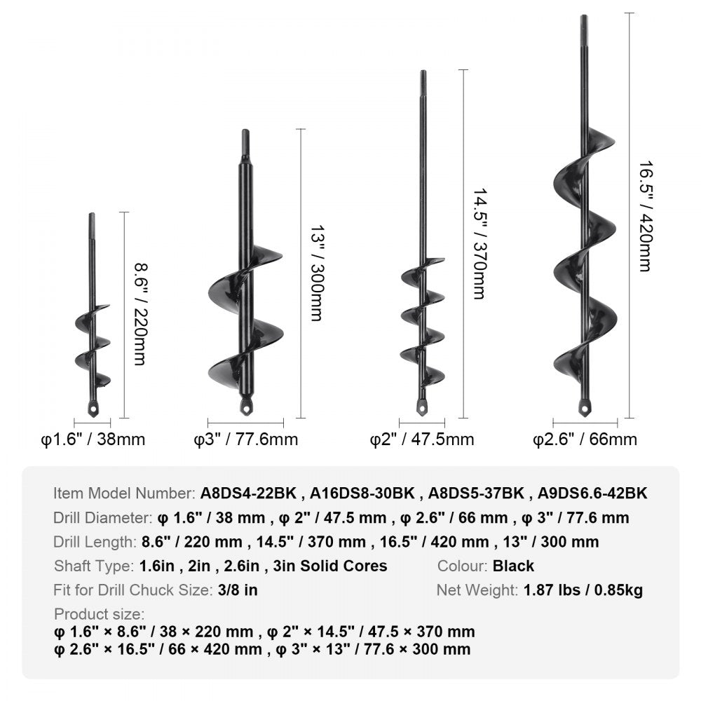 - A8DS4-22BK - VEVOR 4-Piece Garden Auger Drill Bit Set, Efficient Soil Digging