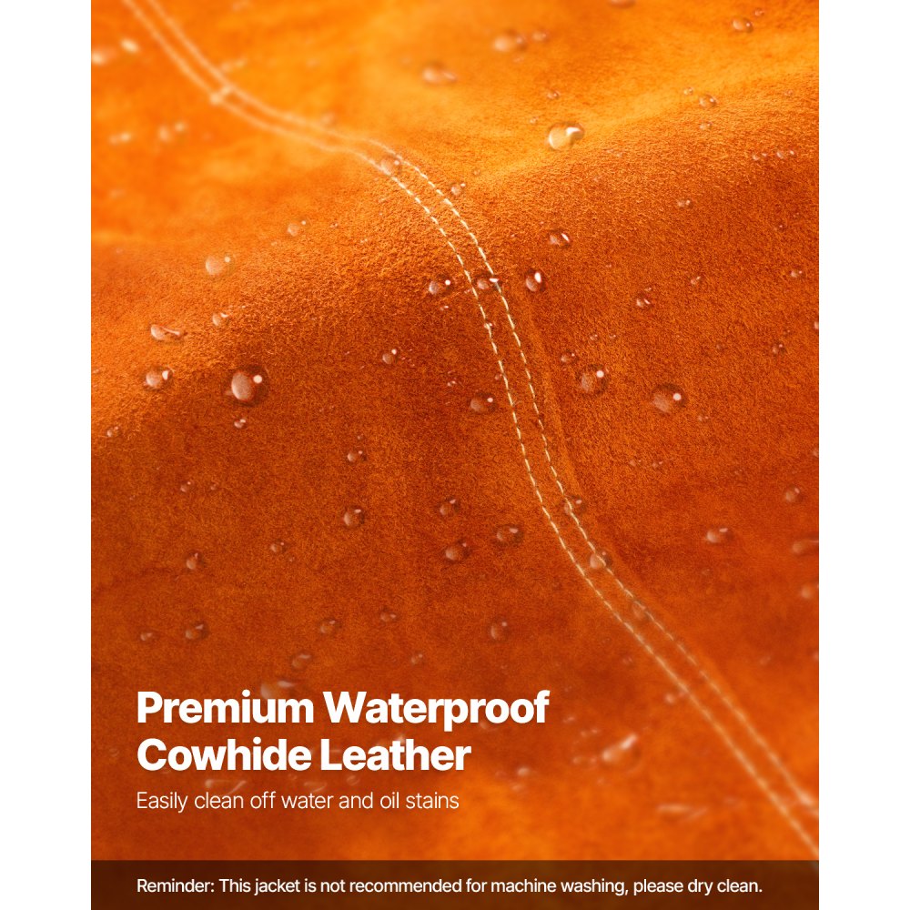 Experience superior safety and comfort with our robust welding jacket crafted from heavy-duty cowhide leather Engineered to shield you from sparks and flames, this jacket features both flame-resistant and heat-resistant properties It includes adjustable cuffs, strong snap buttons, and four convenient pockets, making it an essential accessory for any welding job With an impressive ATPV rating of 92 Cal/cm² for arc protection, it effectively withstands extreme temperatures.
