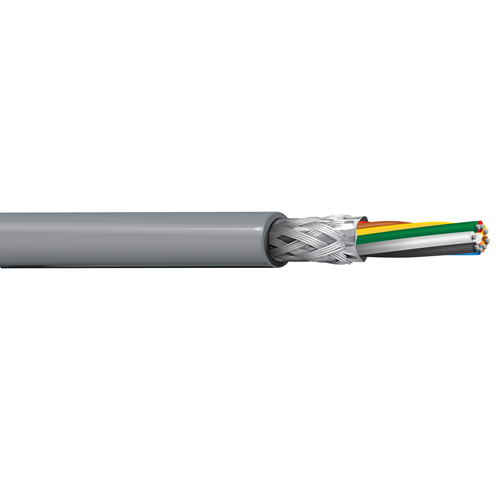Computer EIA RS-232 Cable, 24 AWG stranded (7x32) tinned copper conductors, semi-rigid PVC insulation, overall Beldfoil (100% coverage) + tinned copper braid shield (65% coverage), PVC jacket.