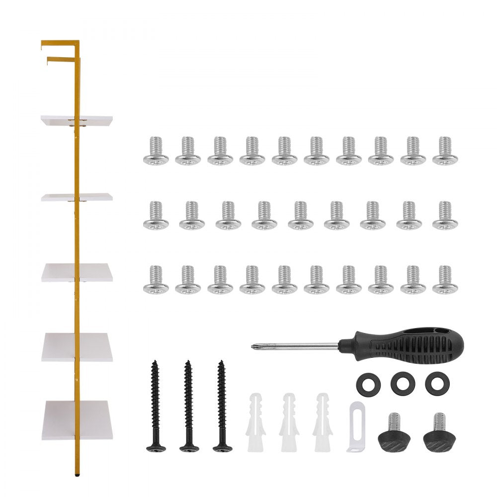 - C240258S-02 - 5-Tier Industrial Pipe Shelf, 24x11.8in, Gold & White