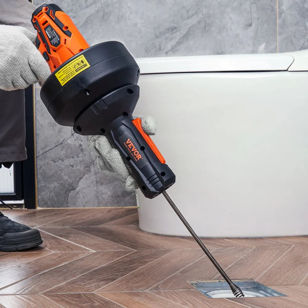 Clear stubborn clogs effortlessly with the VEVOR 12V electric drain auger, a robust tool tailored for removing blockages in toilets, sinks, sewer lines, and bathtubs It is designed to work seamlessly in pipes with diameters ranging from 3/4" to 2" This efficient device tackles challenging obstructions caused by hair, mud, food scraps, and paper, making it an essential asset for both home and professional plumbing tasks.
