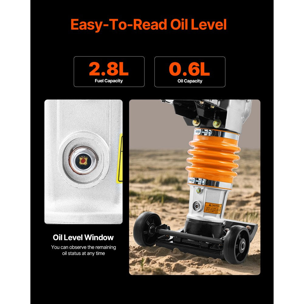 •6.5 HP High Power: Equipped with a mainstream 6.5 HP motor, the vibration-impact rammer provides strong power and ensures exceptional compaction results..